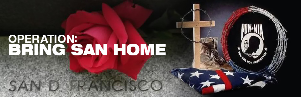 San gave the ultimate sacrifice for his country; he deserves to be brought home to American soil NOW. Investigative and retrieval efforts to this point have been challenged by bureaucratic changes, budget cuts, and general lack of concern for the families affected.